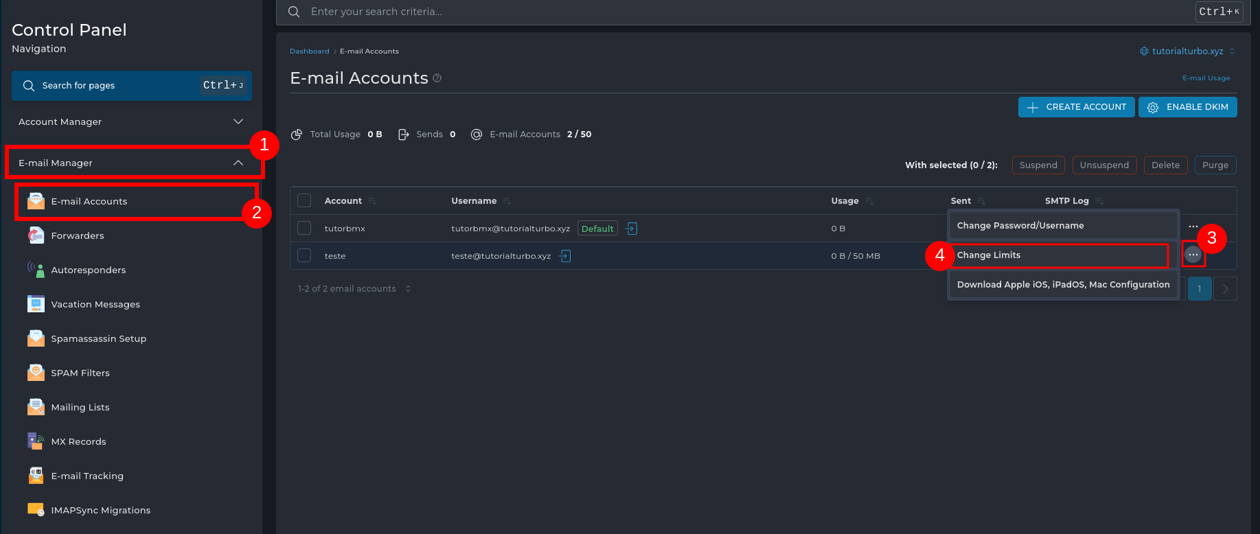 Follow the steps below to change the quota for an email account in the DirectAdmin panel: