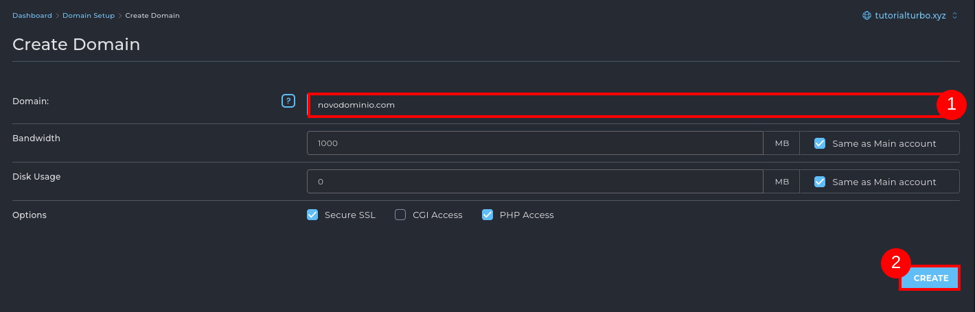 Será aberta uma tela para inserir os dados do novo domínio.
