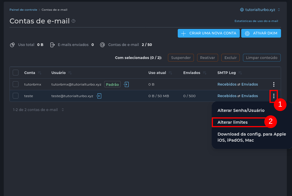 Como definir a cota máxima de e-mail no DirectAdmin