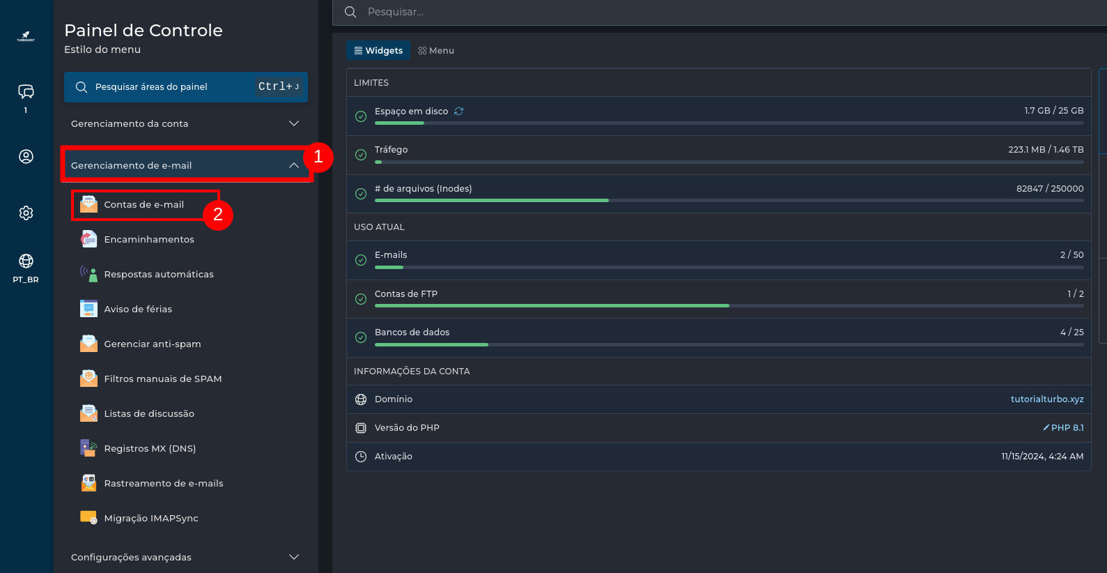 1. Acessar a área de gerenciamento de e-mails